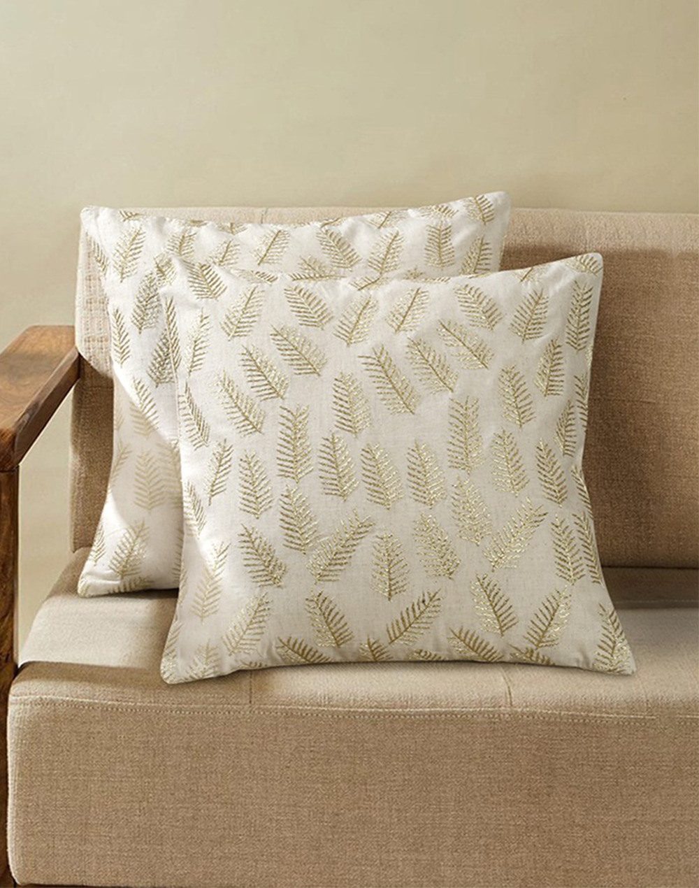 Set Of 2 - Decorative Cotton Covers With Embroidery - 16'X 16"