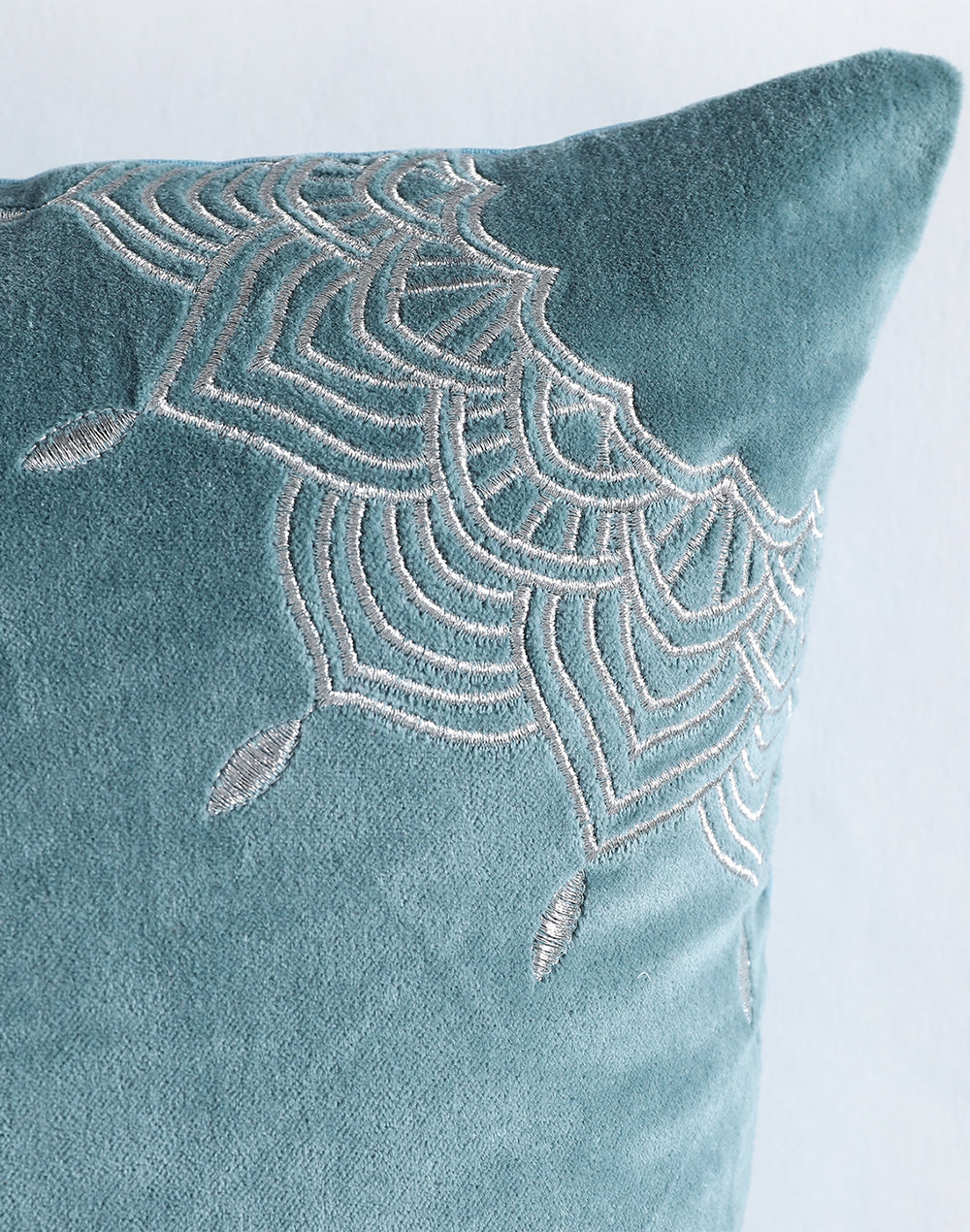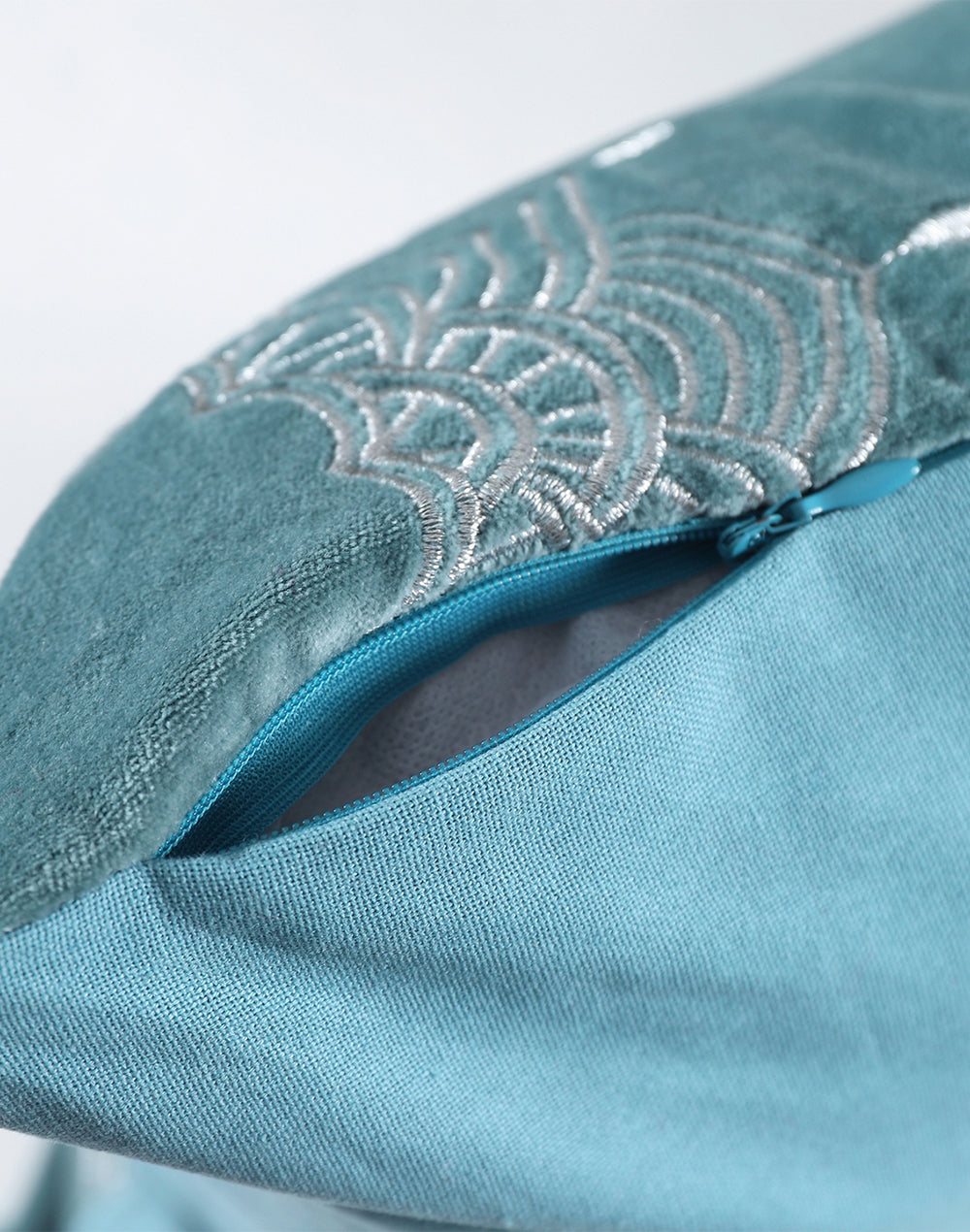 Set of 2 - Elegant Teal Embroidered Velvet Sofa Cushion Cover - 16"x16"