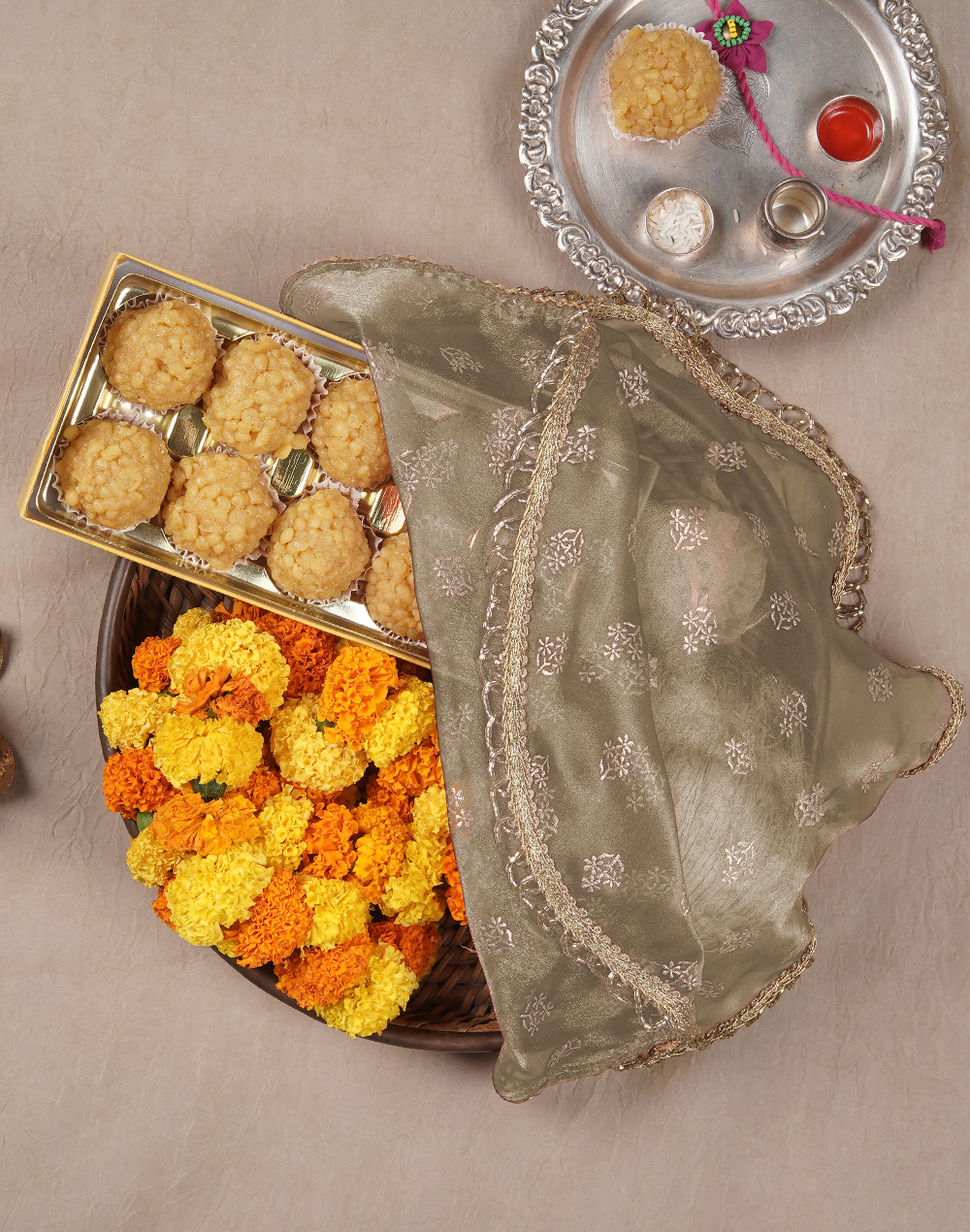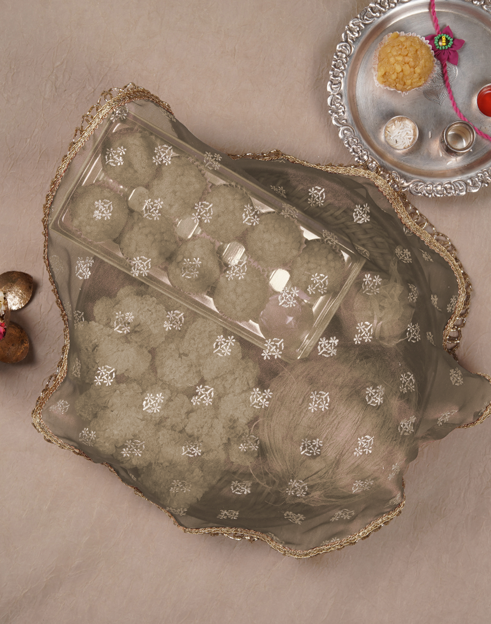 Gold Printed Thaal Cover set of 2| Pooja Thaal Cover| Festive Thaal Cover