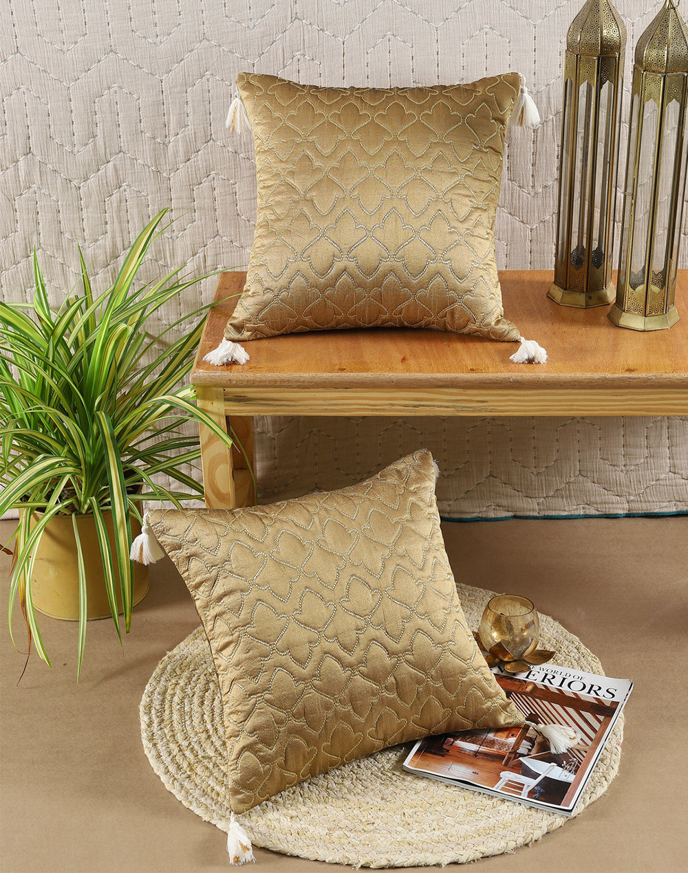 Set of 2 - Green Quilted Decorative Sofa Cushion Cover - 16"x16"