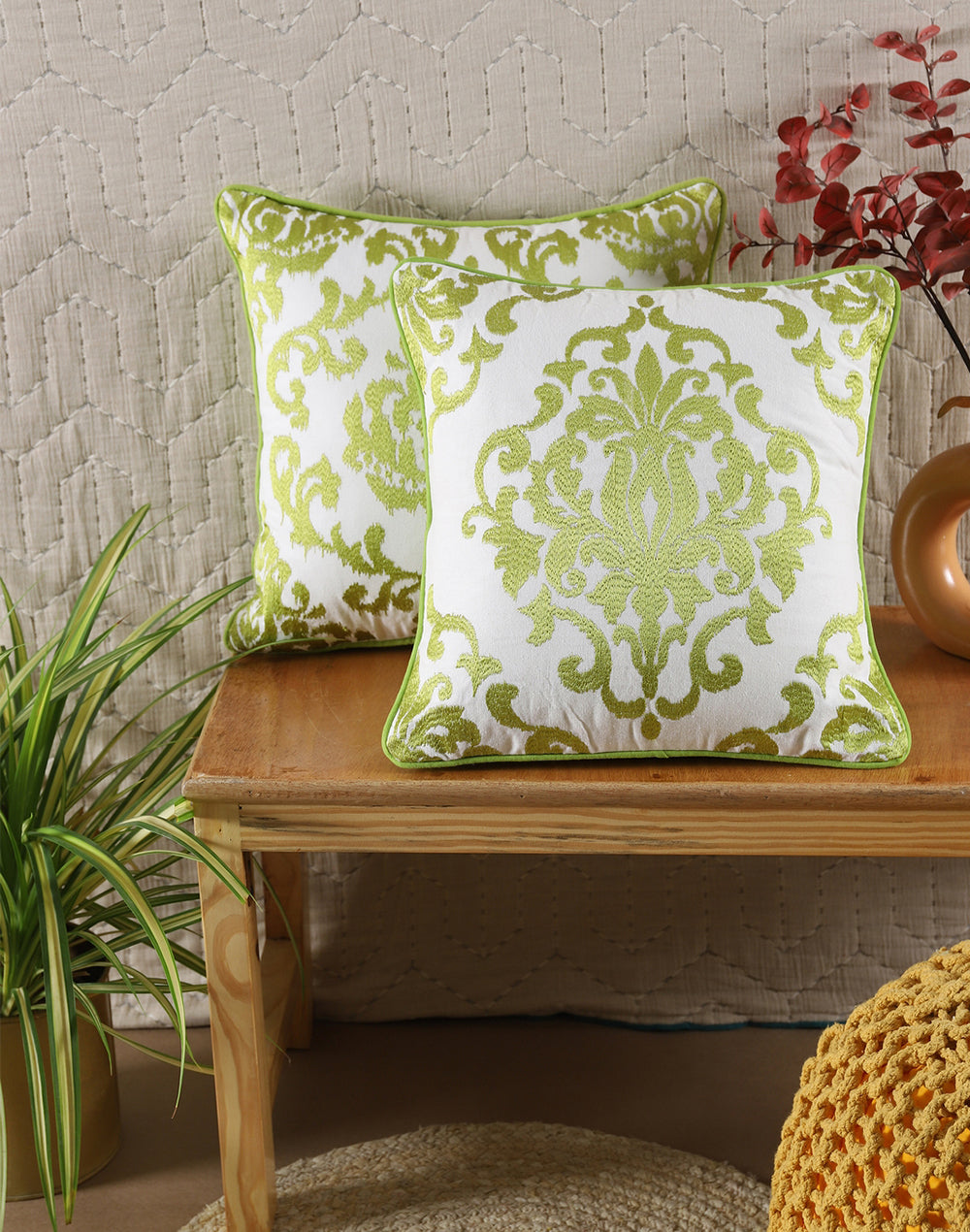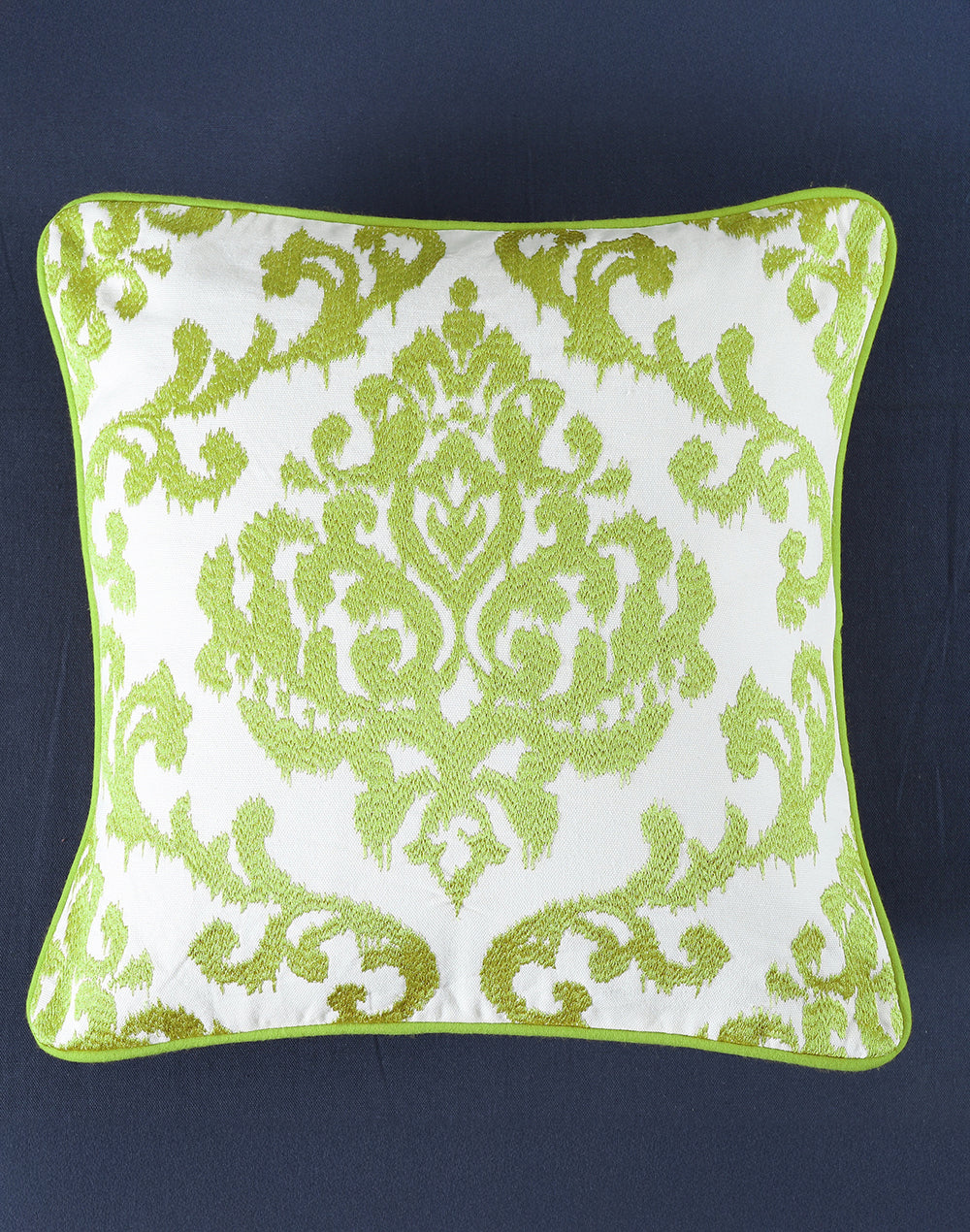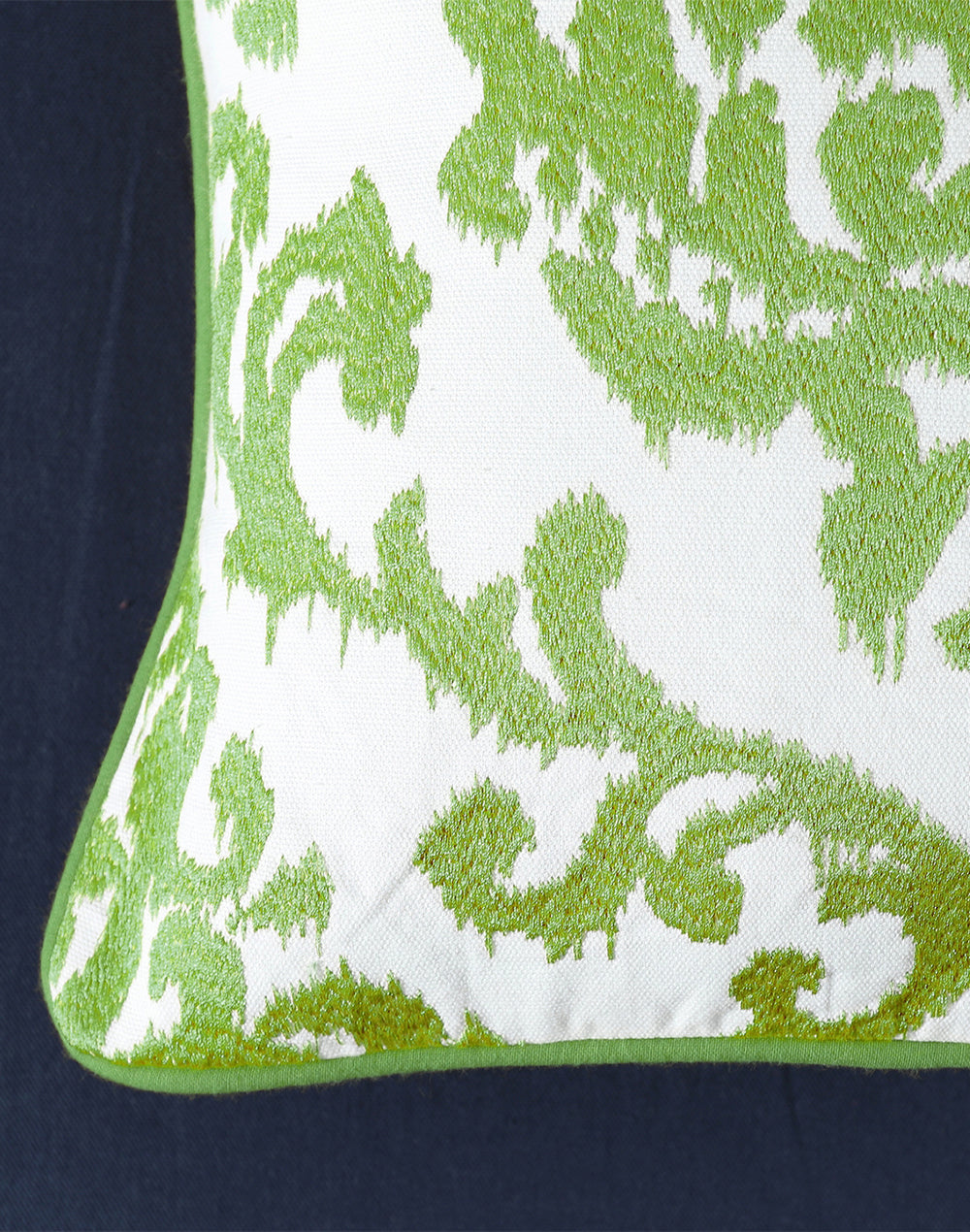 Set of 2 - Green Ikat Embroidery Decorative Cushion Cover - 16"x16"