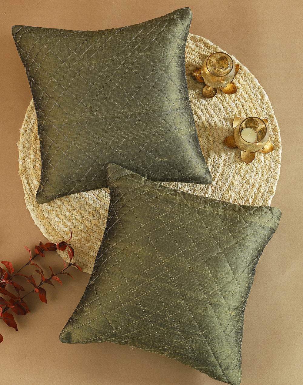 Set of 2 - Green Quilted Festive Cushion Cover - 16"x16"