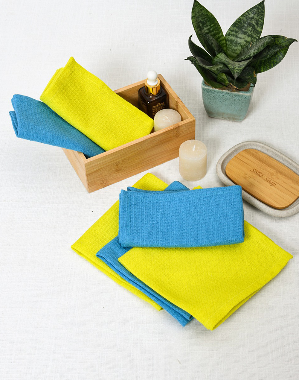 Blue & Yellow Waffle Face Towels