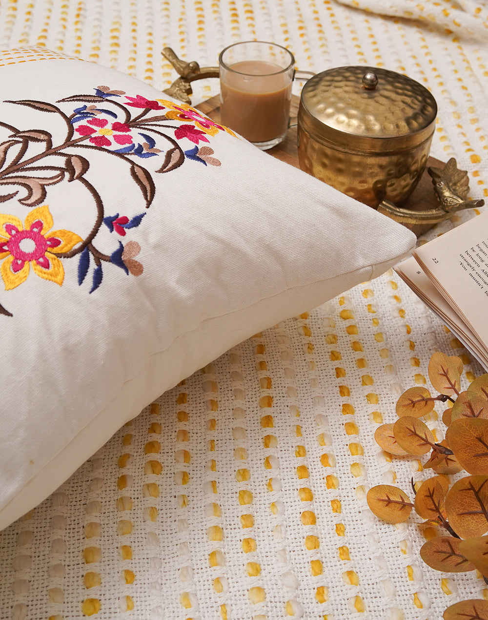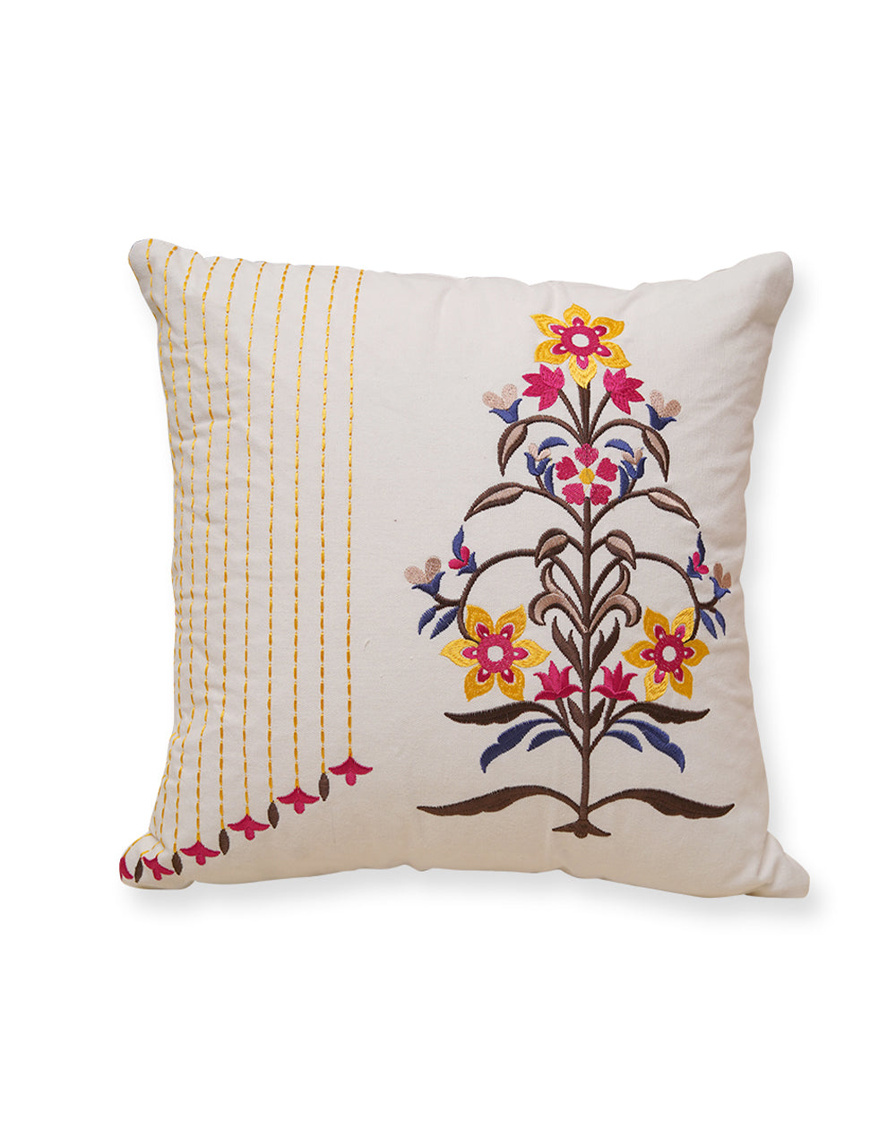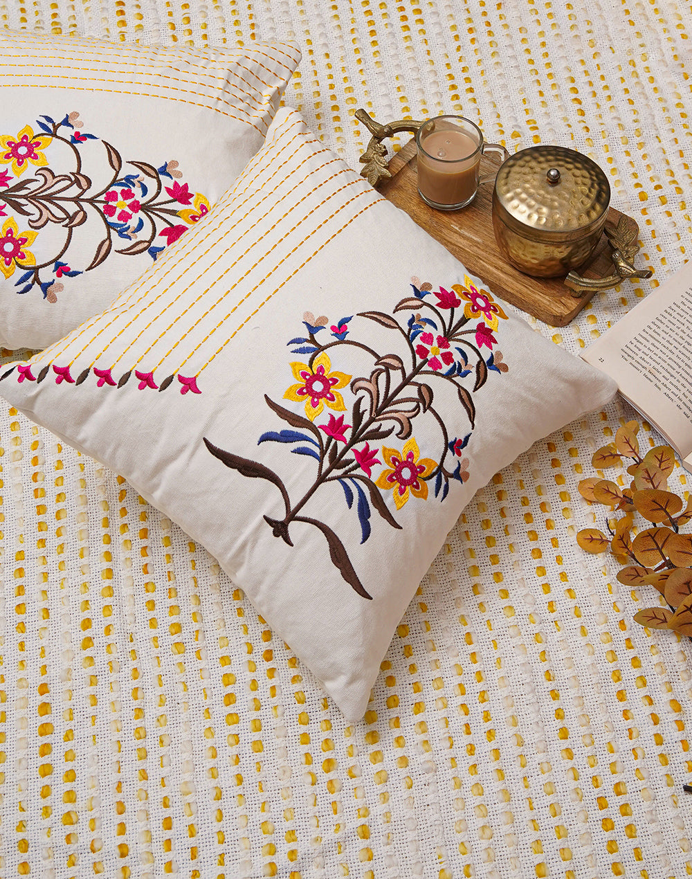 Set of 2 - Pink Motif Embroidered Cotton Cushion Cover - 16"x16"