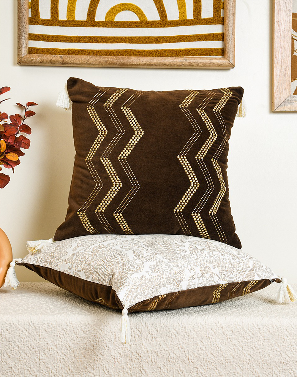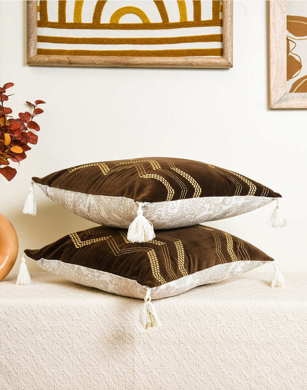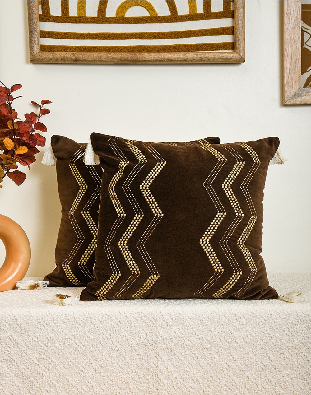 Set Of 2 - Zig Zag Embroidered Decorative Cushion Cover