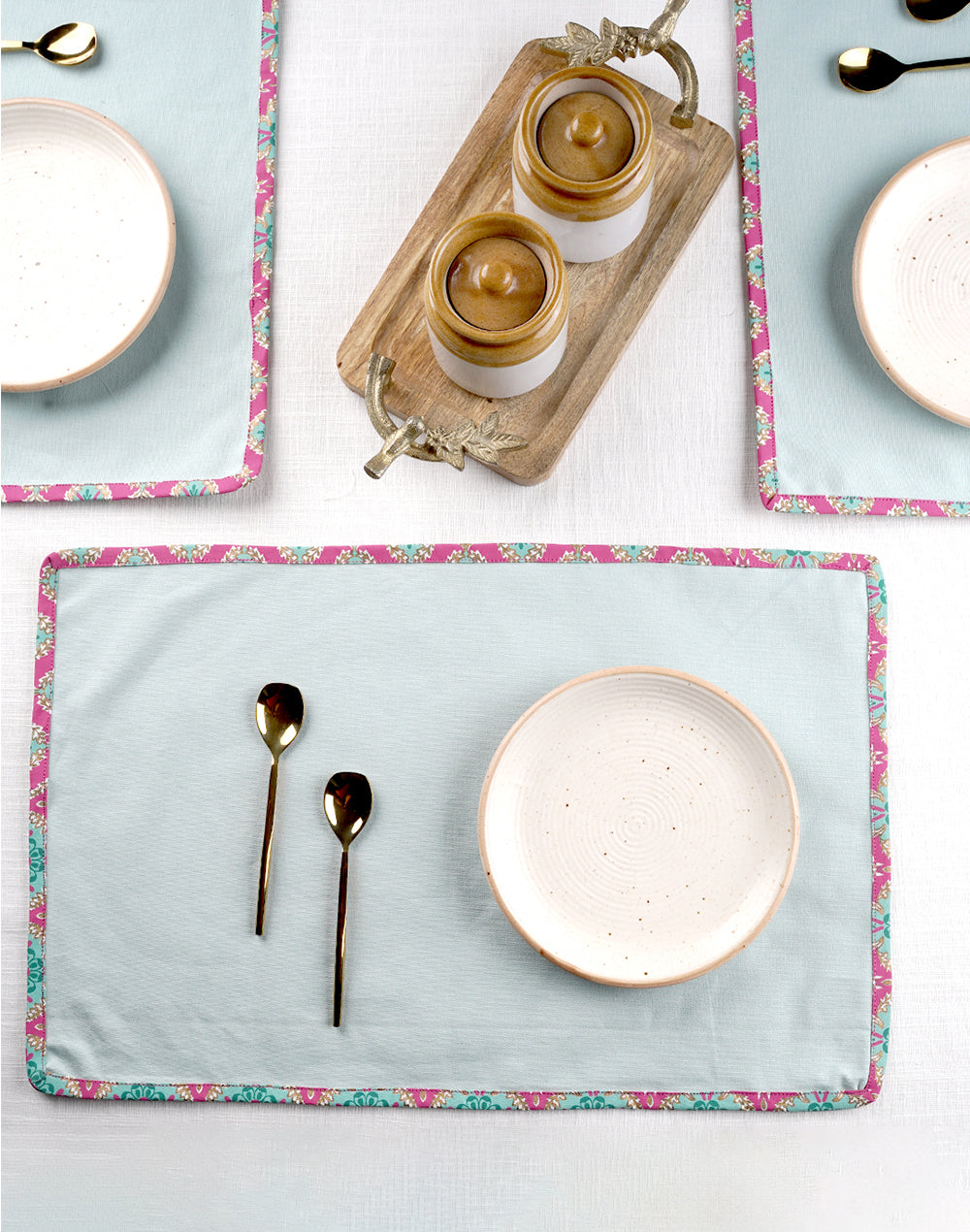 Set of 4 - Blue With Contrast Piping Stylish Placemat Set
