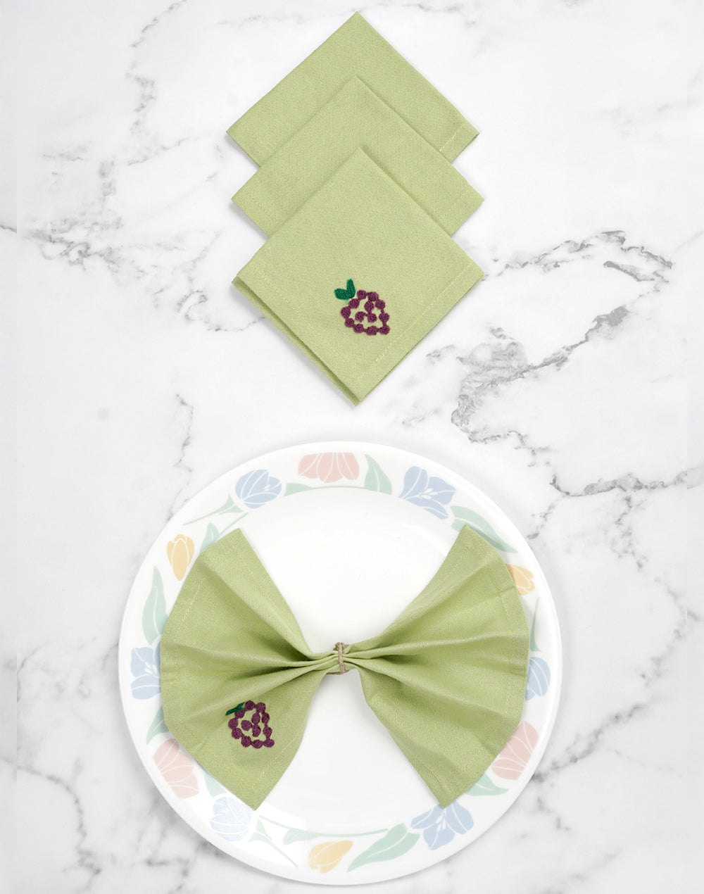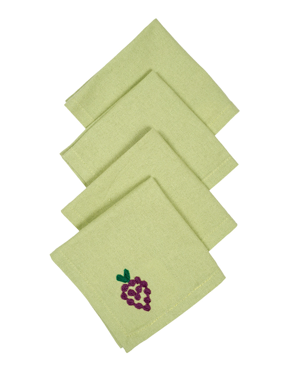 Set Of 4 - 8" Cocktail Grape Embroidered Napkins