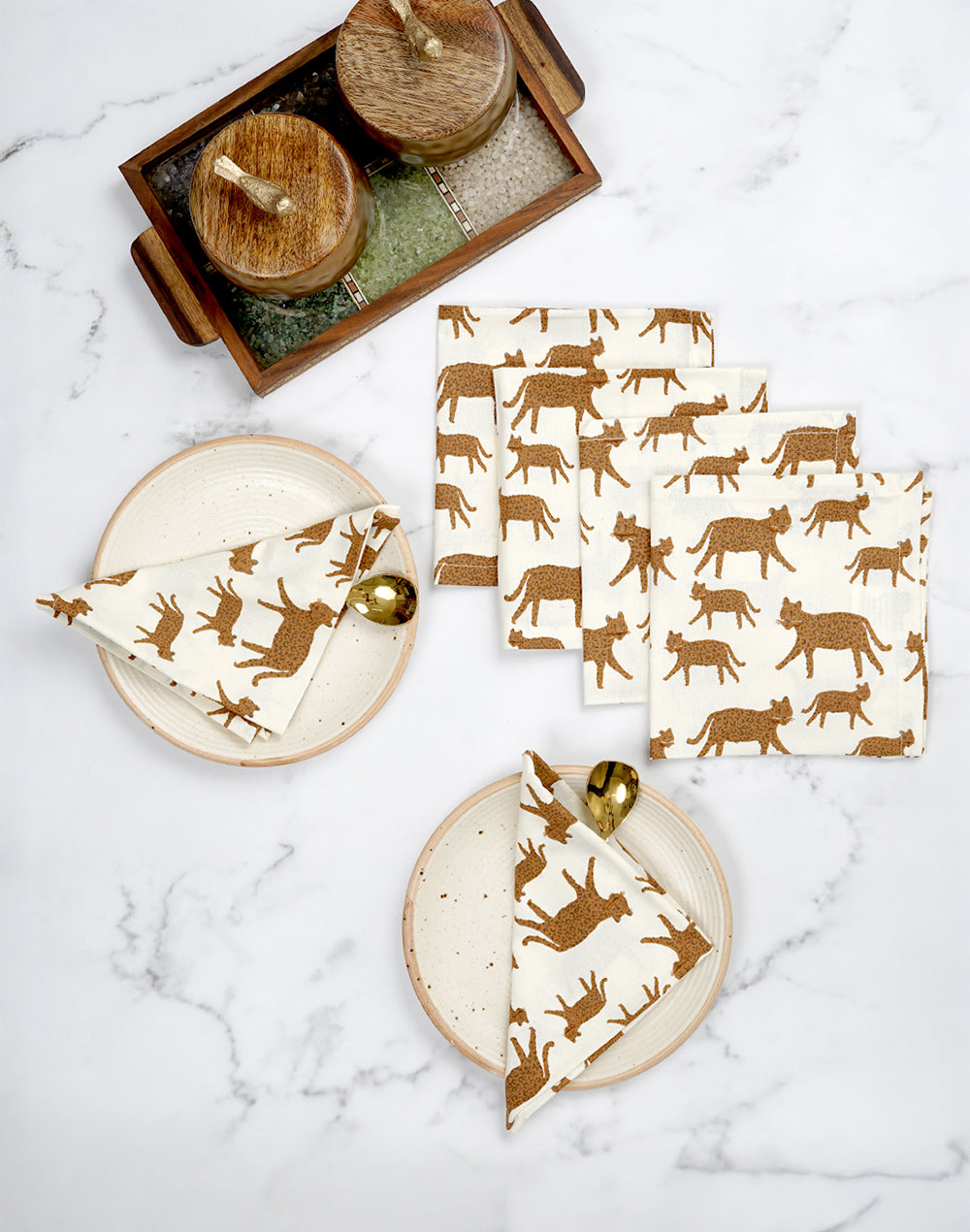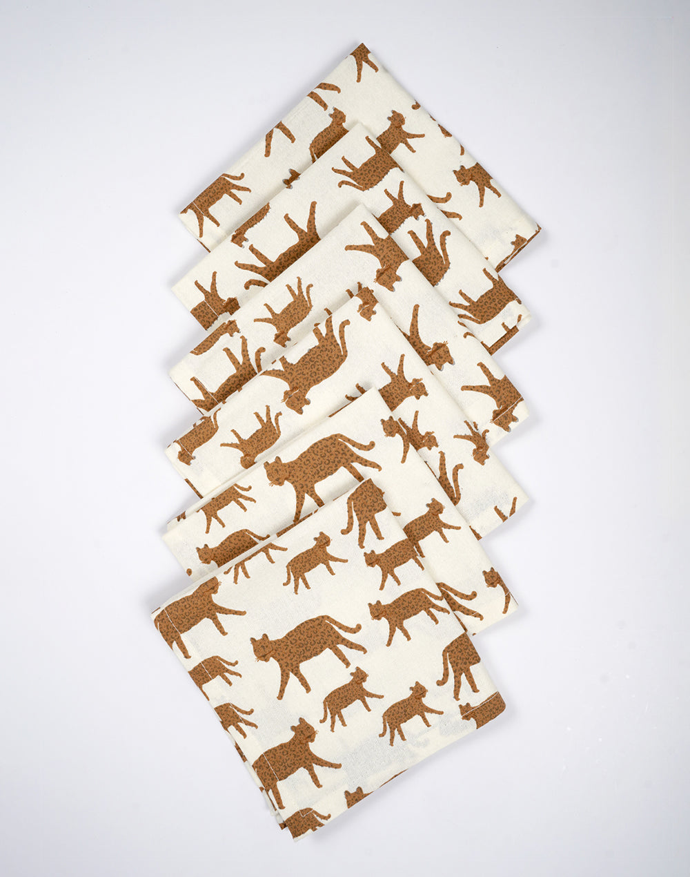 Set Of 6 - 12" Animal Print Cocktail Napkin / Small Cotton Napkins