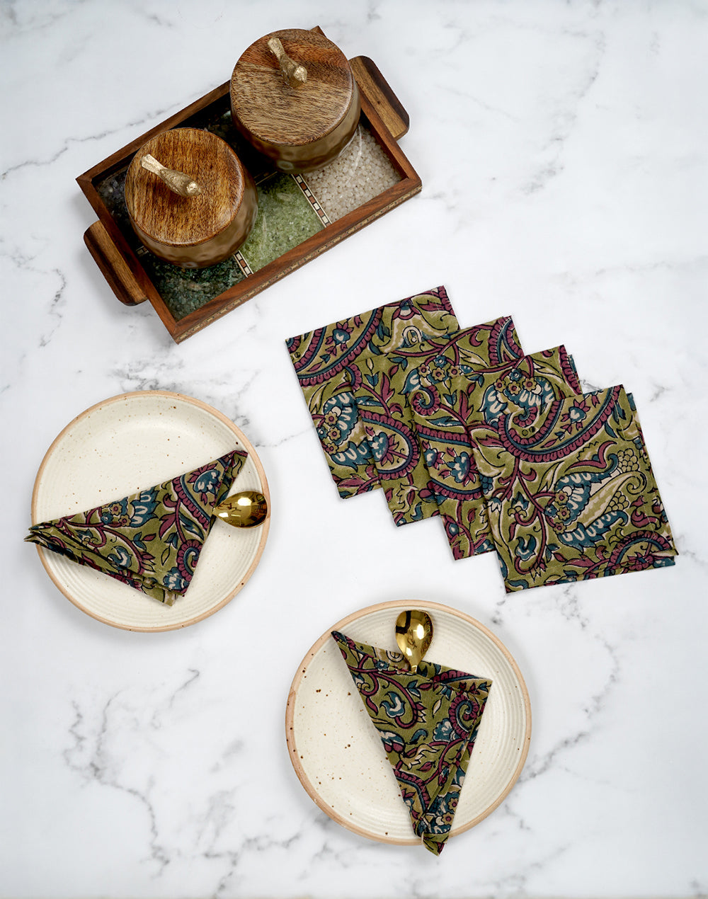 Set Of 6 - 10" Floral Printed Cocktail Napkin / Small Napkins