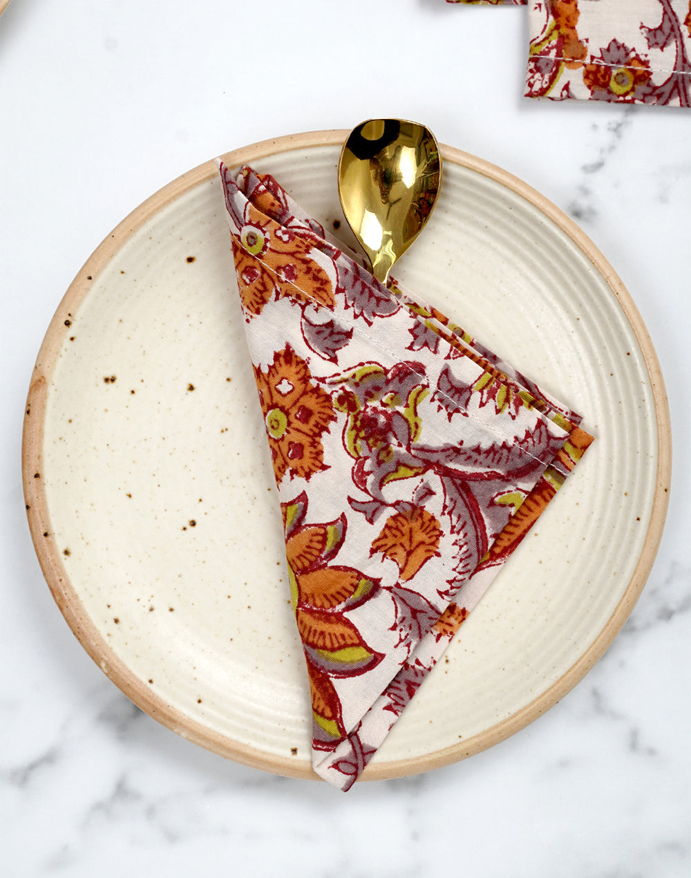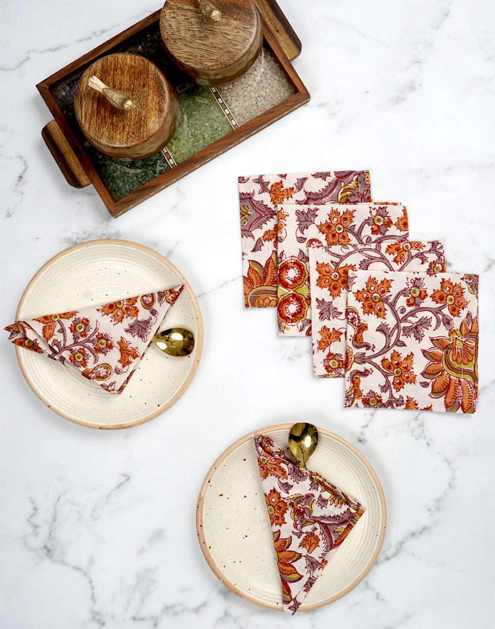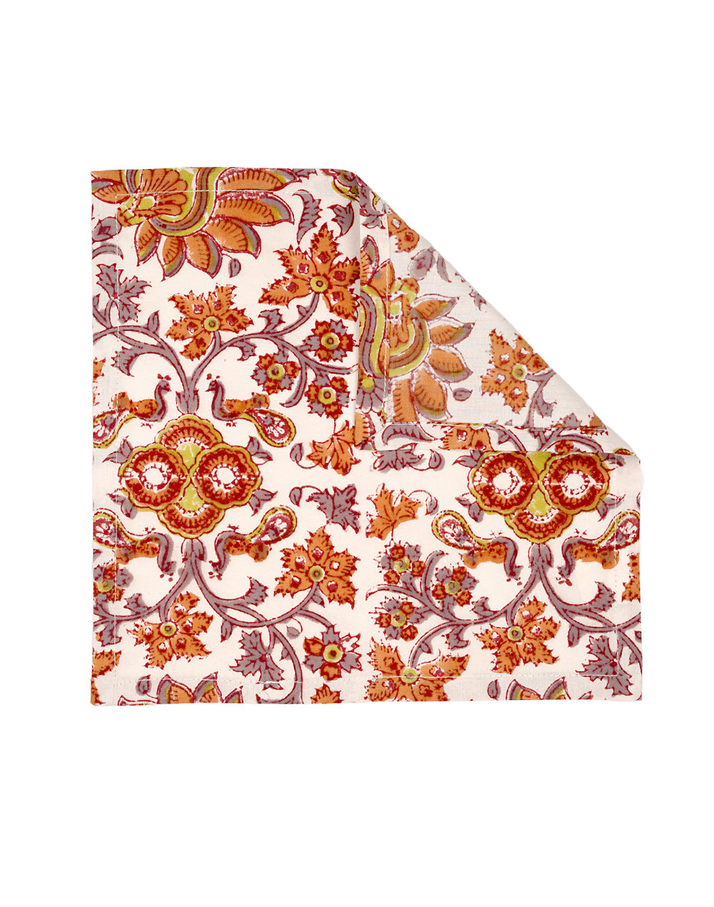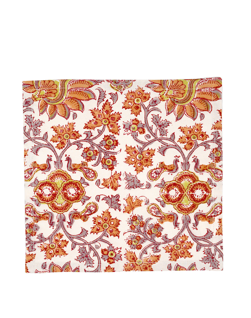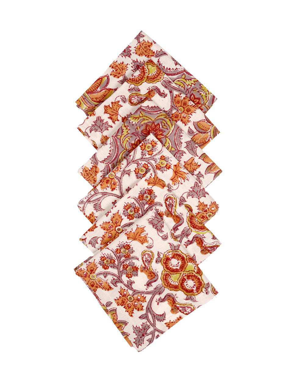 Set Of 6 - 10" Jacobean Jaal Printed Cotton Cocktail Napkin