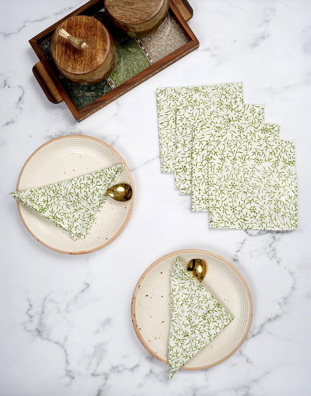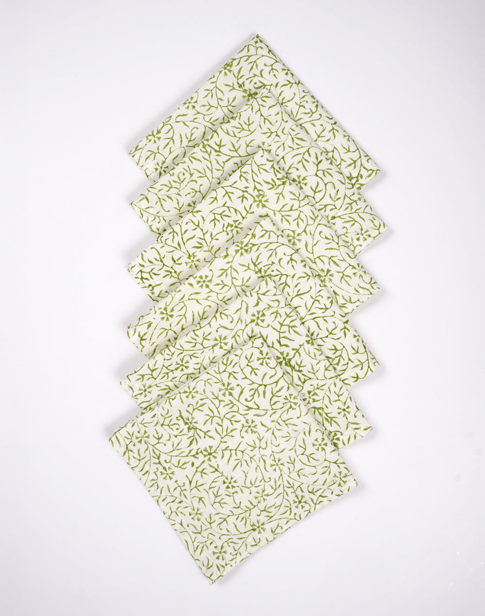 Set Of 6 - 10" Printed Cotton Napkins/ Small Napkins