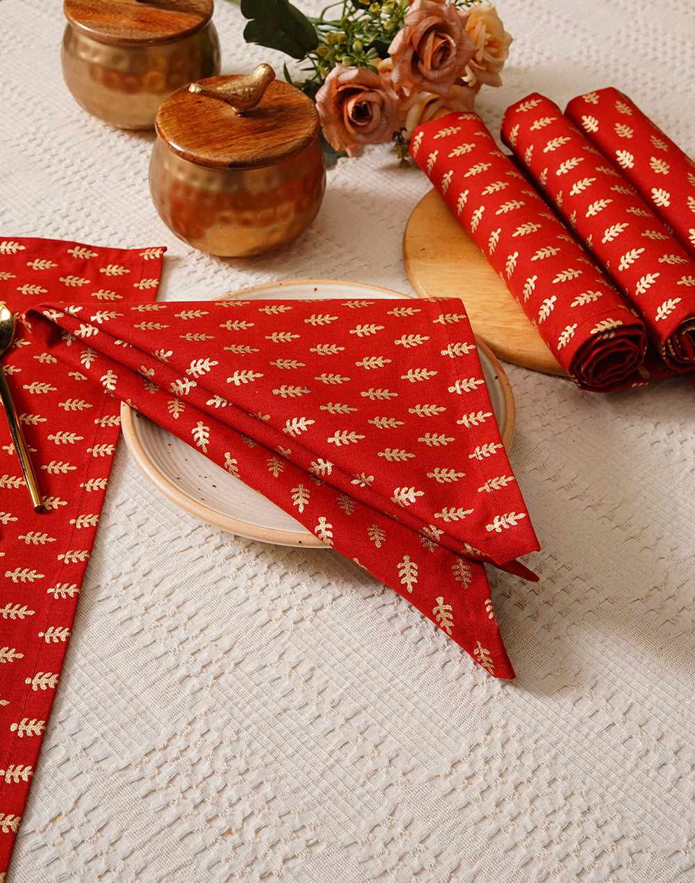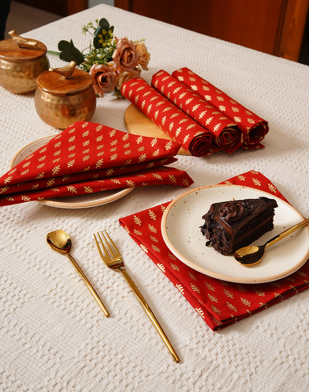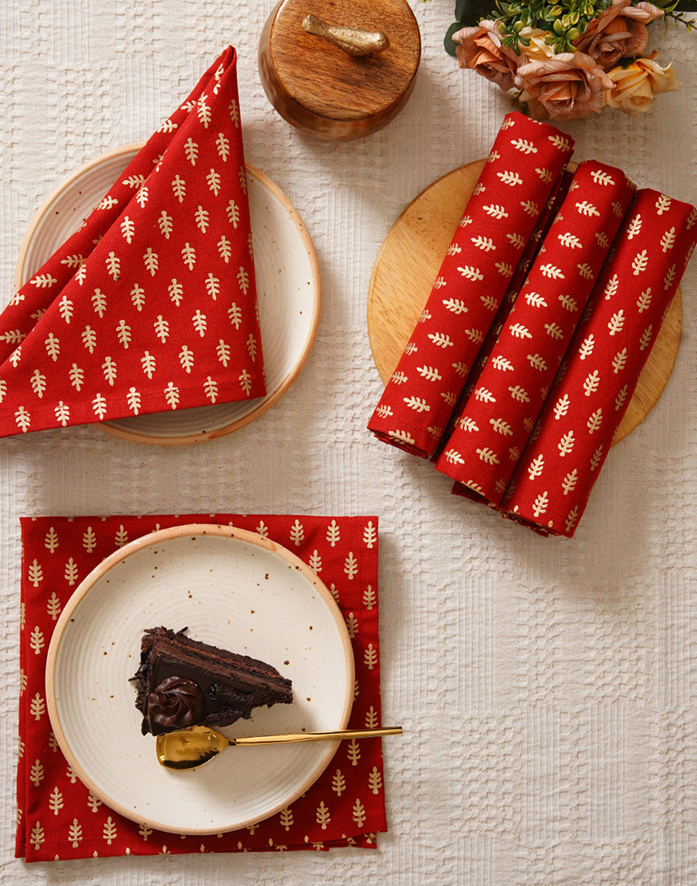 Set of 6 - 16" Red Decorative 100% Cotton Table Napkins